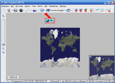Режим спутниковой карты мира