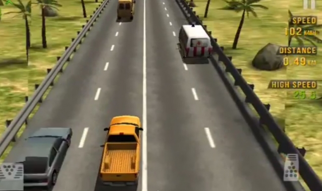Во взломанной Traffic Racer для Андроид игроку предстоит показать все свои навыки управления автомобилем на высокой скорости в плотном потоке. Управление в игре осуществляется при помощи акселерометра. На экране вы увидите две кнопки отвечающие за газ и тормоз. В обычном режиме мы будем бесконечно ехать по трассе и уворачиваться от попутных автомобилей. За каждую машину вы будете получать баллы. Чем дольше вы продержитесь, тем сложнее играть, потому как скорость возрастает, а количество автомобилей увеличивается чуть ли не в два раза. Но как только вы врежетесь, игра тут же закончится.